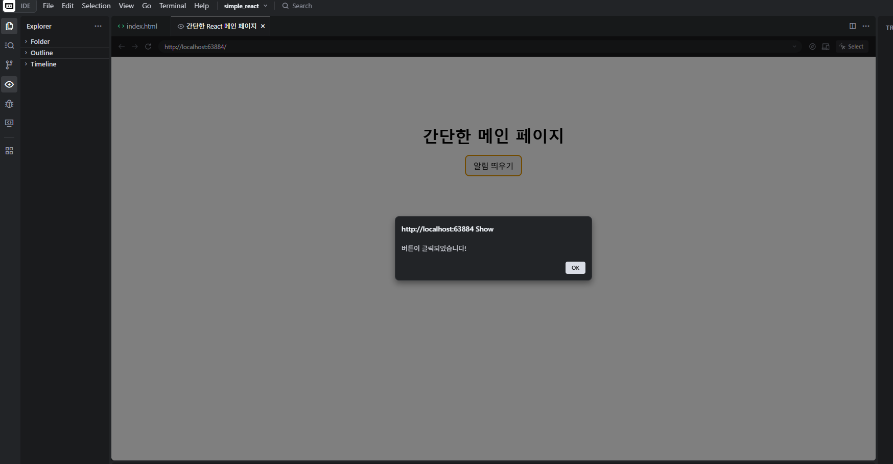 알람 띄우기를 클릭하니 잘 동작하네요.