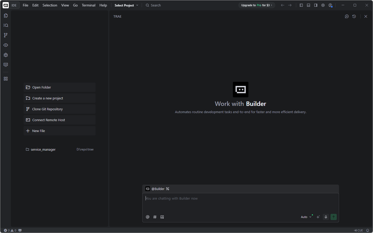 처음 Trae AI 를 실행한 모습니다.