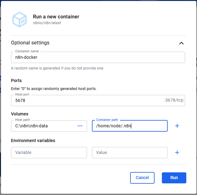 | 2 | 테스트 실행 | docker run -p 5678:5678 n8nio/n8n |