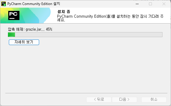 [데스크톱 바로가기 생성]은 바탕화면에 PyCharm 아이콘을 생성해주는 옵션입니다.