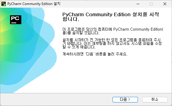 다음 받은 pycharm 설치 파일을 클릭합니다.