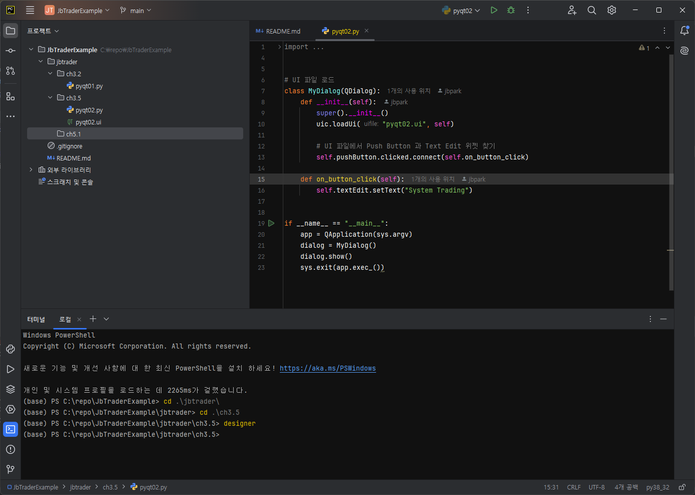 JbTraderExample 에는 각 단계 별 코드가 저장될 예정입니다.