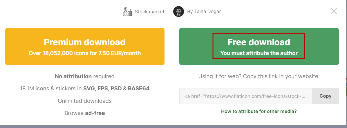 - 원하는 아이콘을 검색합니다. (예: "sotck" 등)