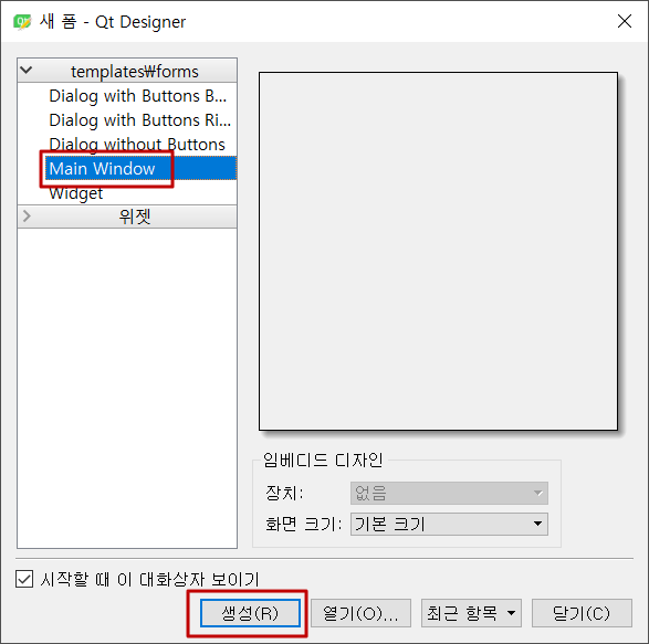 Qt Designer 를 이용하여 UI 를 제작하겠습니다.