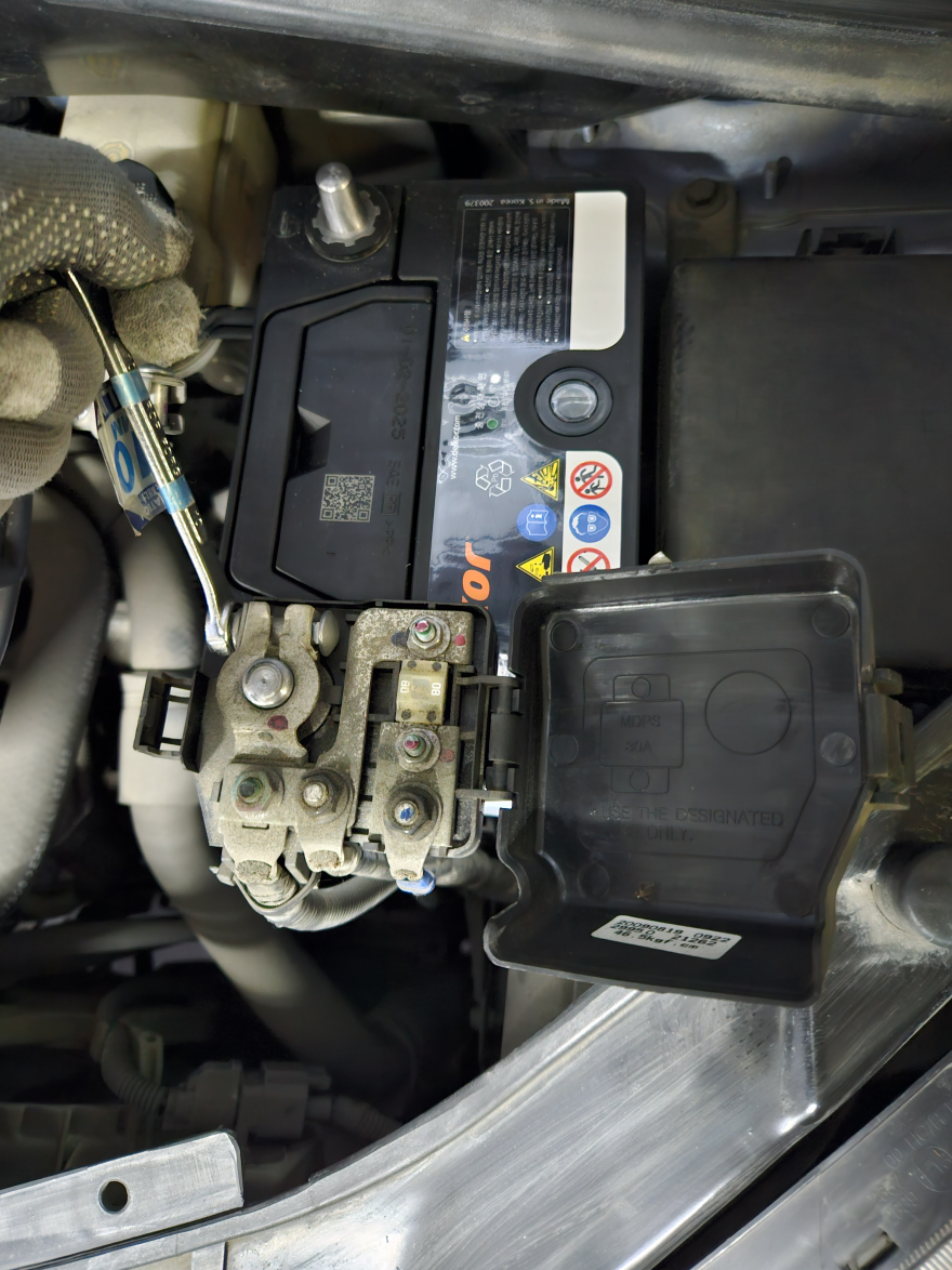 양쪽 배터리 단자 봉 연결 나사를 제거한 후에 자동차 본체와 연결된 나사를 제거해야 합니다.