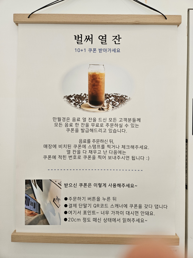 그런데 어느날 커피를 마시다가 벽을 보는데 쿠폰 관련 내용이 있더라구요.