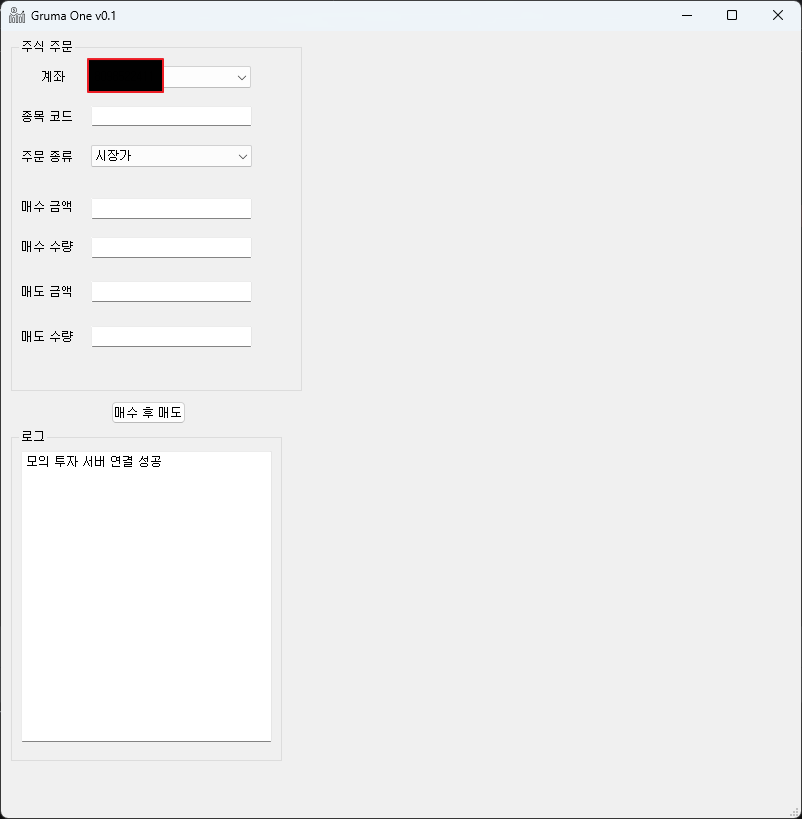 1) 서버 연결, 매수, 매도 통합 생성