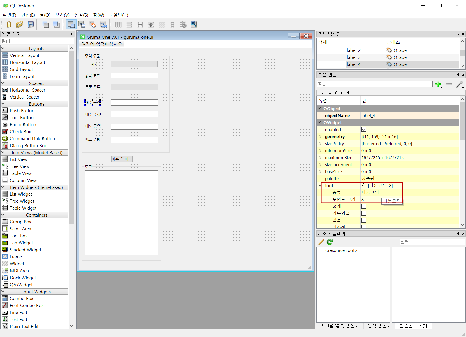 3) Qt Designer 에 폰트 적용