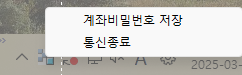 Open API 접속 후 Windows 우측 하단에서 아래 Open API 서버 연결 아이콘에서 마우스 우측 클릭 후 계좌 비밀번호 저장을 선택합니다.