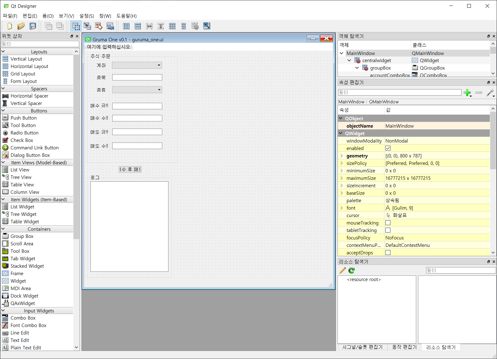 guruma_one.ui 에는 다음과 같은 콤포넌트들이 존재합니다.