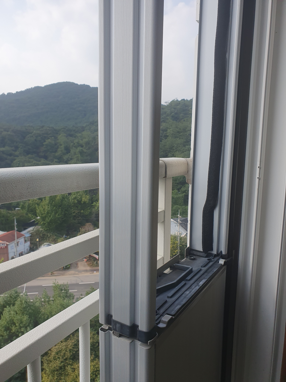 설치 후 창틀에는 스토퍼라고 창틀이 밀리는 것을 방지하는 부품이 있습니다.