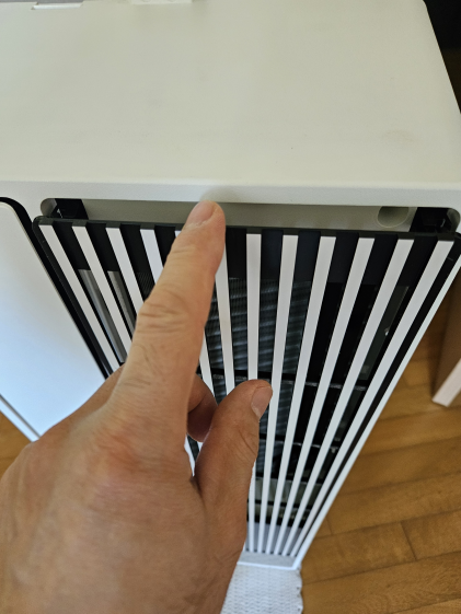LG 창호형 에어컨의 경우 전면 판넬 위쪽 좌우를 누르면 판넬을 제거할 수 있습니다.