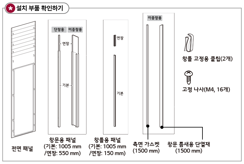 설치 키트 하단에는 창틀에 고정되도록 되어 있습니다.