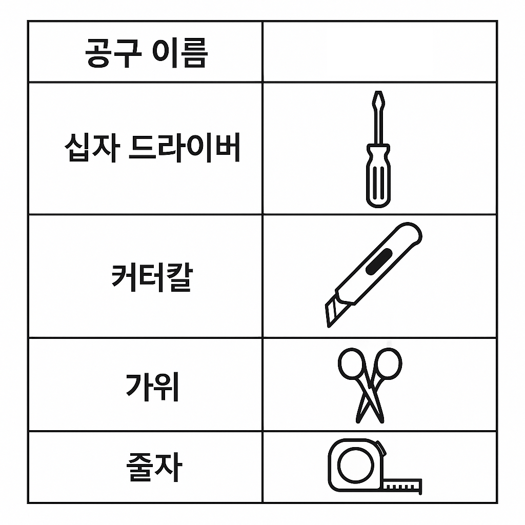 설치 시 다음과 같은 기본 공구가 필요합니다.