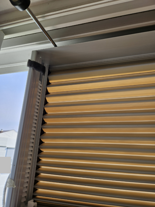 창틀 주름있는 곳에는 고정 버튼이 있어서 누르면 창틀을 올리면 창틀이 올라갑니다.